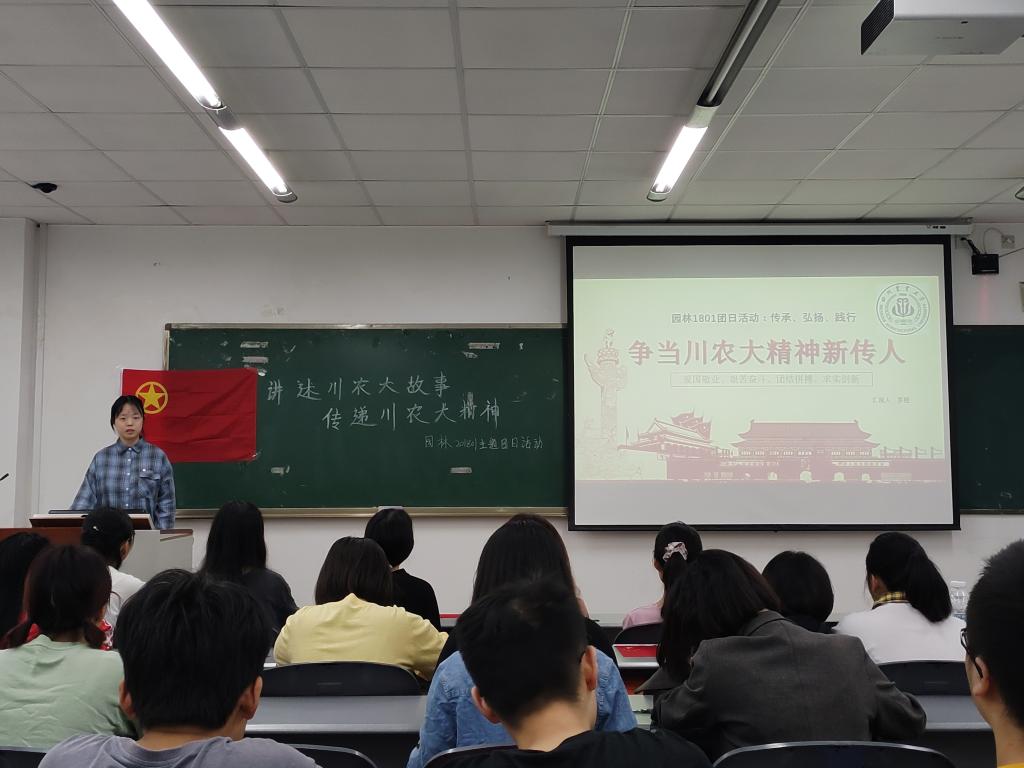 为深入了解川农大精神的内涵和意义,进一步弘扬和传承川农大精神,2020年9月14日上午9时,园林201801班于4-C205教室开展以“讲述川农大故事,传承川农大精神”为主题的团日活动。