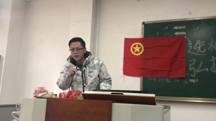 而后,进行班级优秀典型颁奖,给予奖章,颁发奖品。此次颁奖提前经过一周的投稿和筛选,选取了对班级贡献杰出者、品质闪光者、精神可嘉者,分别是彭琳媛、魏明浩、刘珏宇、陈金叶、钟冰、后新语、204寝室等同学。支部给予优秀者奖励,勉励全体成员积极争做优秀青年。