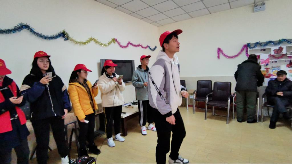 之后,志愿者们各展才华,独唱,独舞等节目应有尽有。《军港之夜》、《草原上升起不落的太阳》、《打靶归来》、《我们都是追梦人》、《歌唱祖国》等多首红色歌曲在不大的活动室里接连唱响,使老人和志愿者们之间的氛围越发热络。还有张玉玺同学活泼搞怪的独舞《护花使者》让老人们欢笑声不断,赖曦洁同学的独舞《棠梨煎雪》柔美优雅而不失青春活力,配上银临优美而活泼的歌声,更是让全场都鼓掌喝彩,甚至把公寓的管事阿姨都吸引了过来。