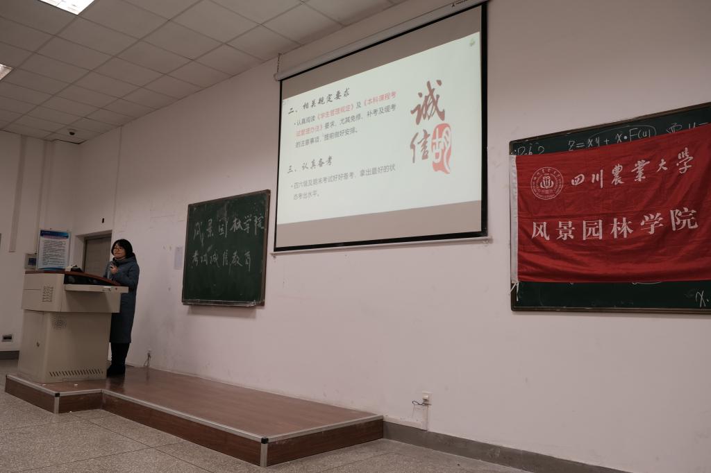 本次考试诚信教育会议由王莉老师主讲。会上,王老师主要就教育部取消“清考”的相关规定要求及注意事项、认真备考、诚信要求、考前准备等五个方面进行了阐述。其间,针对取消“清考”这一政策,王老师认真细致讲解了有关细节,嘱托在座各位将认真对待各项考试的应考态度传达至小班每一位同学,避免出现“毕业难”等问题。并且就各项考试来说,王老师着重强调了诚信考试的必要性及违反规定的相关处理决定,一再告诫各位同学严守考试规章制度,坚守诚信品质。同时,就即将来临的全国大学生英语四、六级考试,王老师也做了相应提醒与鼓舞,祝愿大家都取得好成绩。