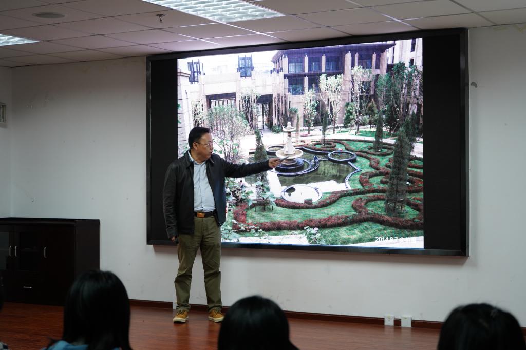 11月14日,成都绿茵景园工程有限公司董事长、304am永利集团官网特聘校外导师曾跃栋先生作客304am永利集团官网企业高管讲堂。在西康楼209为园林17级1班、环境设计18级3班近80位同学作了内容生动的项目设计与落地全流程讲解。