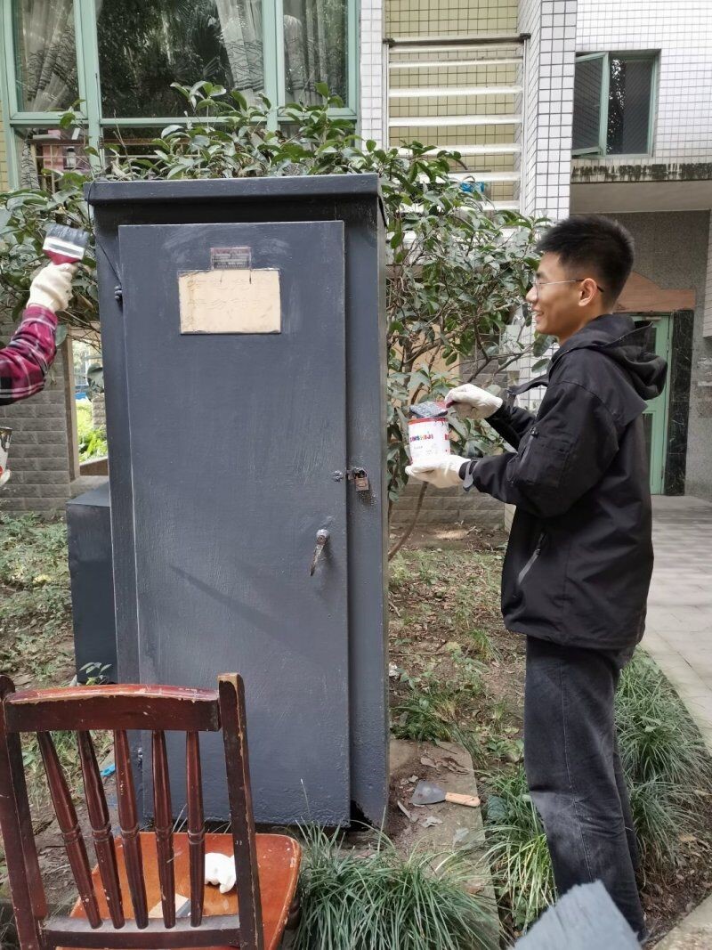 2019年12月1日,304am永利集团官网青年志愿者协会的志愿者们来到了成都市温江区的合江社区,帮助社区进行第二次社区美化活动。本次活动的主要任务是为社区生锈的电箱除锈并涂上新的防锈漆。