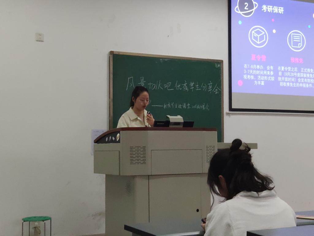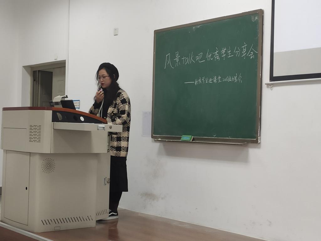 2019年11月5日下午4:00,风景talk吧优秀学生分享会第二场(面向2018级学生的分享会)在四教A306顺利举行。此次分享会的主讲人是我院2018-2019学年优秀学生标兵张希颖同学、国家奖学金汪蓉同学和陈育新优秀学生奖学金一等奖获得者蒋文圆同学,她们分别是我院永利集团官网、园林和环境设计专业2016级学生,分别保研至天津大学、中国农业大学和四川农业大学继续深造。