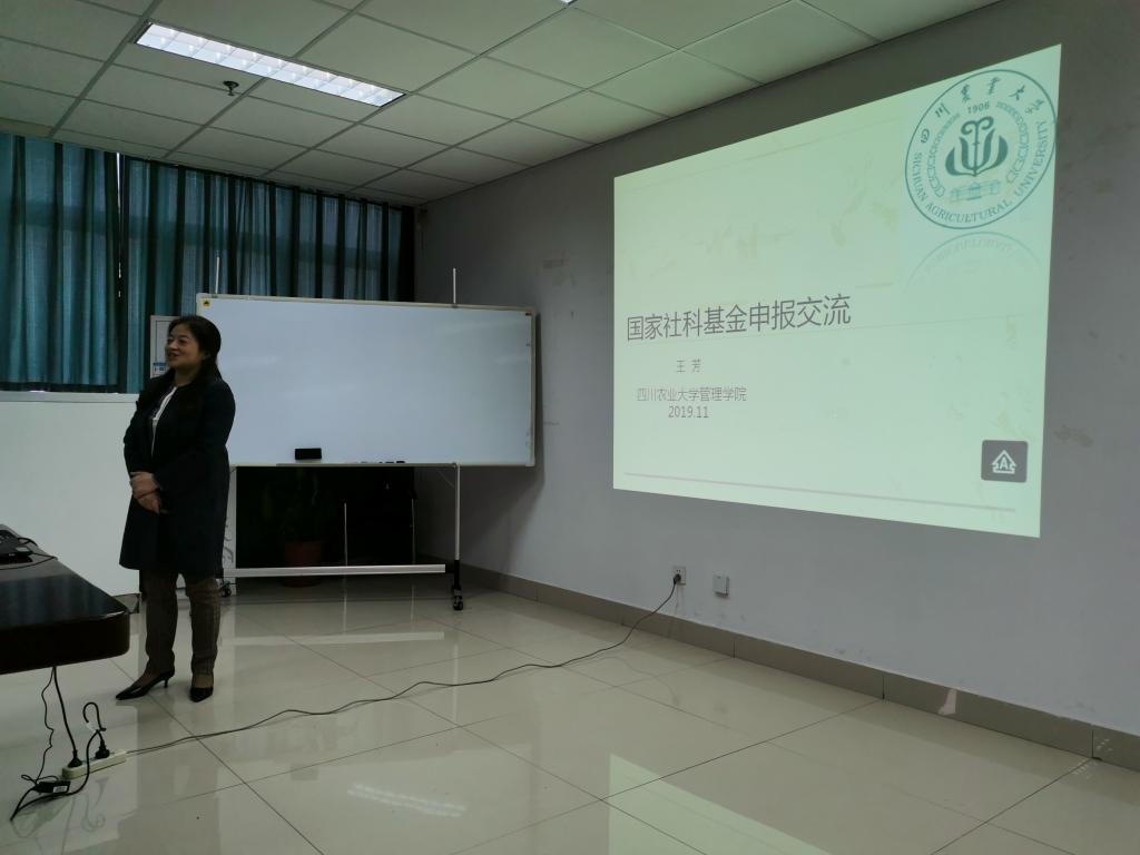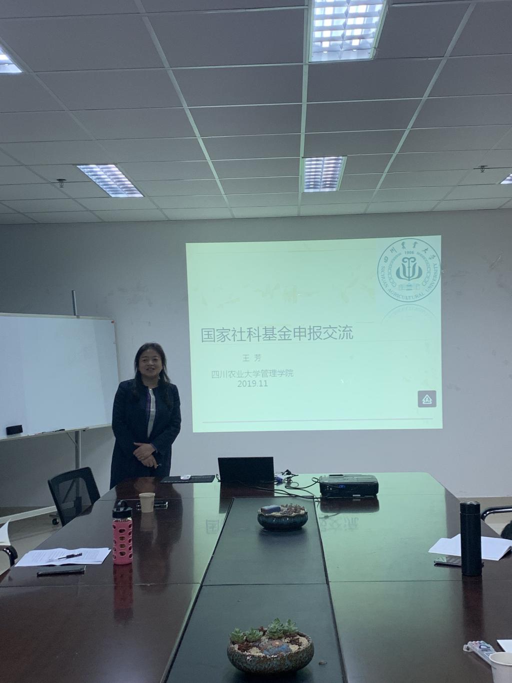 报告分别由2019年度国家社会科学基金获得者,四川农业大学管理学院王芳教授、国家自然科学基金面上项目获得者304am永利集团官网马均教授、学院第一位规划设计类国家自然科学基金获得者潘翔博士分别从基金立题、申报书撰写、团队组建等方面进行了分享。王芳以获得的国家社会科学基金项目为例,交流分享了基金撰写需抓住学术热点与新动向;学会判断选题是否得当;梳理调整申报书论证内容;重点攻克撰写技术要点与技巧提示等,提炼出题目设定要“语不惊人死不休”,内容论证要“如切如磋,如琢如磨”的基金撰写心得。