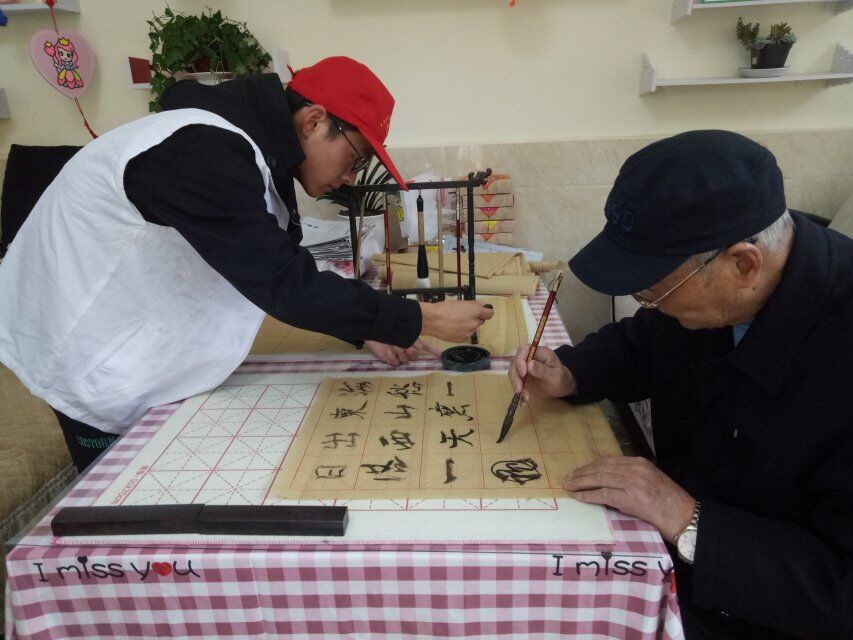 在欢声笑语中,时间飞快流逝,两个小时过去了,第四次活动也圆满结束。一位老人说:“非常感谢你们愿意浪费这么多时间来教我们画画,让我们找回以前的快乐回忆,真的谢谢你们这些志愿者。”