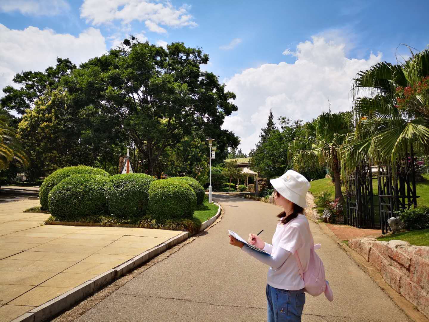 实习第一站——昆明植物园。为了强化实习质量,学院专门聘请了西南林业大学林学院的三位老师为同学们进行介绍。一天的时间,同学们识别了特色园林植物约300余种,了解了重点树种和草本花卉的识别特征、观赏特征、主要生态特性及园林用途。这些植物有在成都常见的,有以前从来没见过的,有外来入侵树种,也有国家一级保护树种,让同学们大开眼界。图2