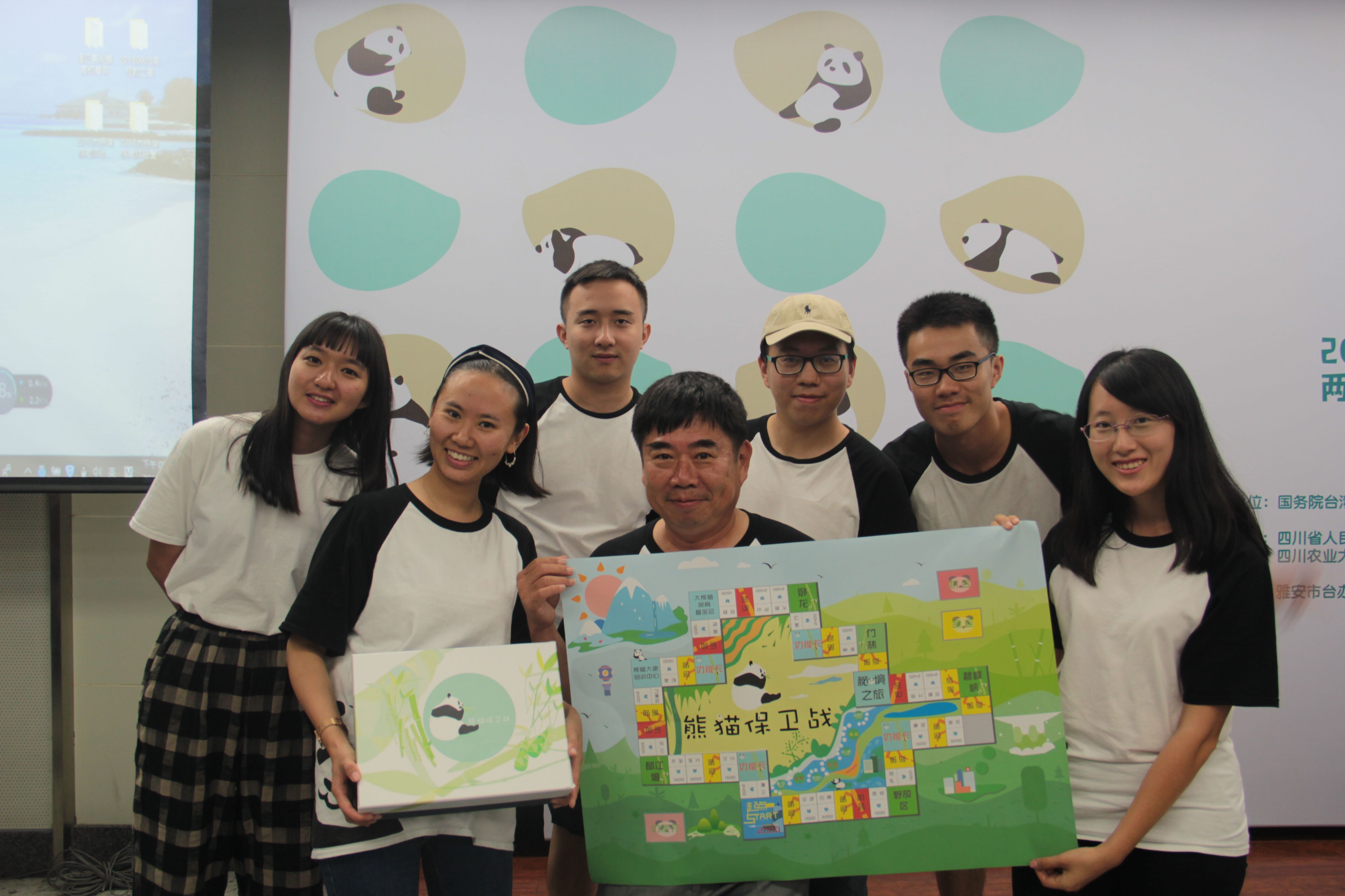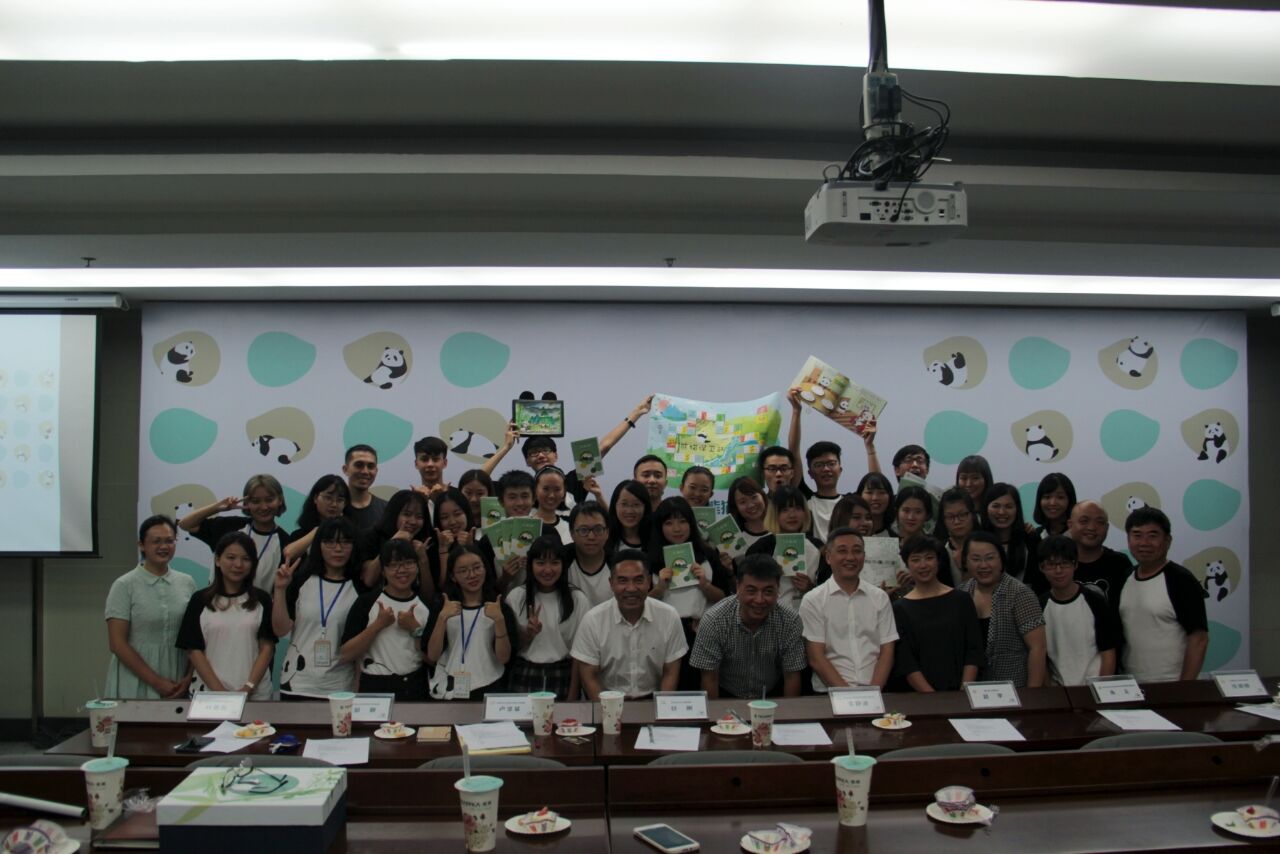 两岸学子分为多个小组,以“教育”为主题,围绕熊猫设计并制作了多套针对小学生的教学作品。精心设计的立体画、色彩斑斓的大熊猫学习手册、精美的大熊猫活页卡通故事书、精彩的大熊猫纪录片、有趣的大熊猫飞行棋等。同学们把这些天学习和观察的大熊猫知识结合自己的想象力开发出了这些寓教于乐的教学用具,其精美程度堪比很多成品教具。发布会上他们不仅仅认真展示了设计的作品,不约而同的都谈到了自己的依依不舍,两岸学子在短短十几日中建立了深厚的情谊。