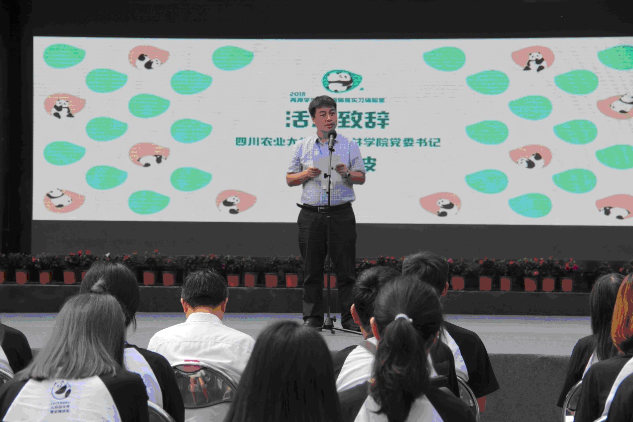 该活动由四川省台办、中国大熊猫保护研究中心、四川农业大学、台湾中国文化大学等共同举办。四川农业大学党委常委、党政办主任丁林,国合处处长张小平,304am永利集团官网党委书记李静波,张益昇及万蕊两位带队老师出席了当天上午的开营仪式。李静波书记在开营仪式上发表致辞时说道,很高兴能够看到两岸青年能够携手一起做大熊猫保育实习体验活动,他代表304am永利集团官网对本次两岸学子大熊猫保育体验营开营仪式的成功召开表示热烈祝贺,也希望活动顺利召开、同学们能够有所收获。