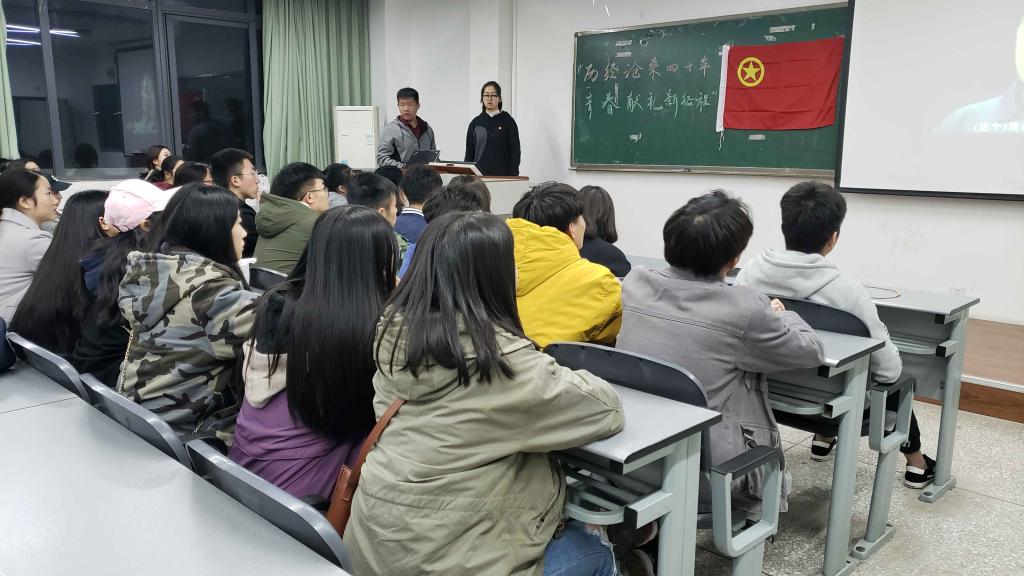 2018年11月24日晚上七点半,304am永利集团官网环境设计三班在第四教学楼C区204室开展了"缅怀改革开放40年,青春献礼新征程"为主题的团日活动。活动由班委焦恩泽和吴海霞主持,40名同学欢聚一堂,共同感受改革开放苍桑巨变的魅力,激发踏上新征程的勇气和决心。