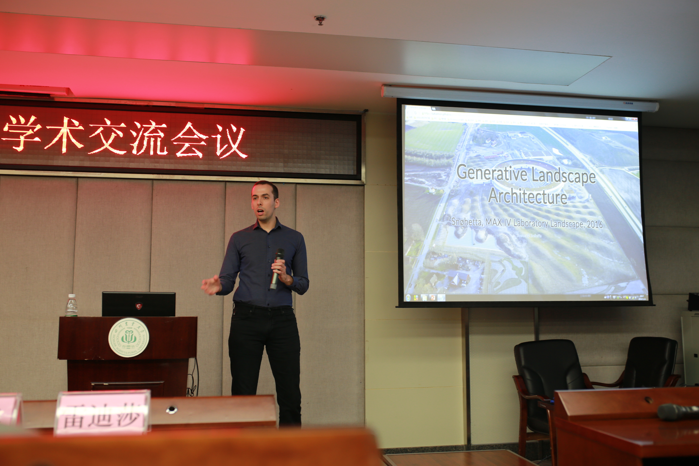 布莱登.哈蒙博士(Dr. Brendan Harmon)获得哈佛大学设计学院的永利集团官网硕士学位,牛津大学地理和环境哲学硕士学位以及北卡罗来纳州立大学设计博士学位。讲座以“生产性景观”为题,介绍了“数字景观设计”相关知识理论成果,内容涉及:①材料的交互属性;