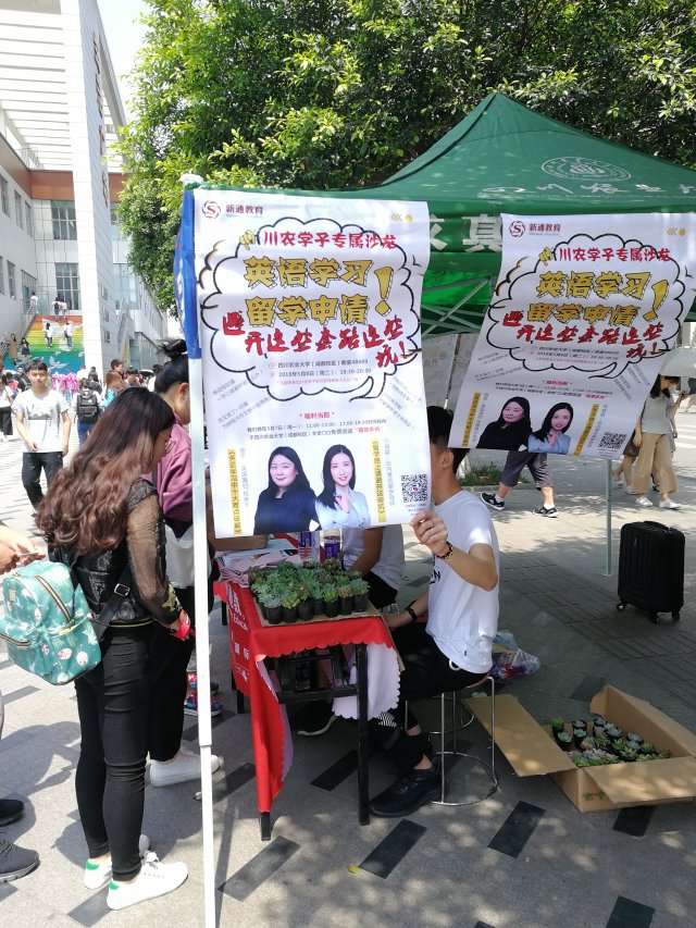 2018年5月7日304am永利集团官网外联部通过之前和新通教育机构商讨达成一致意见为我校师生提供相关留学、学习英语方面的答疑与交流,并获得新通教育机构的赞助。7日当天在食堂小广场进行设点宣传,并为同学们免费派送多肉植物。