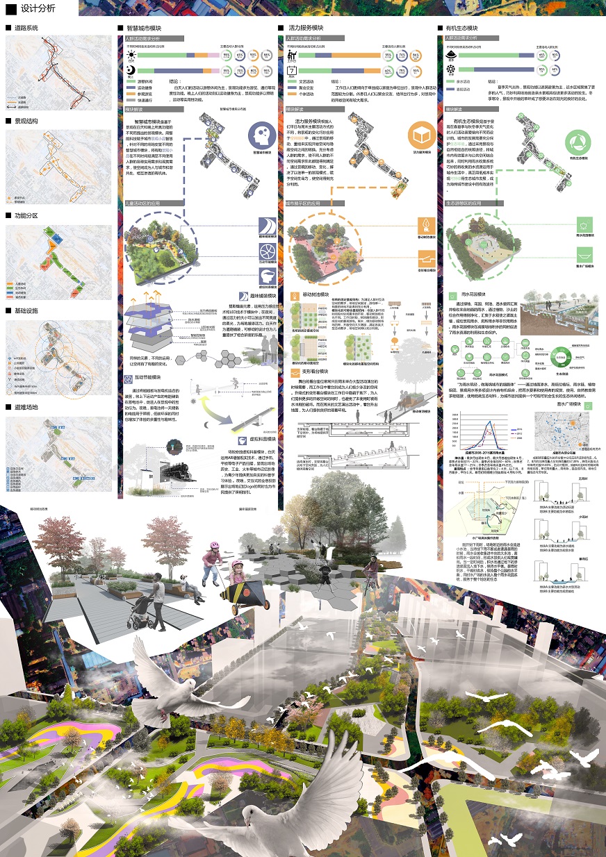 时间的久远悠长与空间的浩瀚广阔,是星空的基调,亦是一方天地亘古不变的主旋律。本次大赛以“渗透----时间与空间”为主题,需要将指定场地设计为公共绿地空间,同时激发周边区域活力,提升生活品质。最大程度的尊重场地的现状与背后的历史,回归场所现场本身,引发设计与场地的相互作用、相互影响,以此延伸人的意志与场地的相互渗透关系,在哲学与生命的尺度上完成场地的更新,演绎出既有场所精神又富有趣味的空间形态。从PPT到三维视频,从“海绵城市”到“可持续生态”,参赛选手以空间为载体,以时间为纽带,将时间的流逝与空间的交错有机地结合起来,在选手们的设计下,空间与时间交互交错、渗透、重叠、缝合,一幅幅浩瀚而深远的画卷在眼前展开,有如行走在时空的边界,为现场观众带来关于时间与空间的新思考,为老师和同学们带来了极佳的观赛感受。