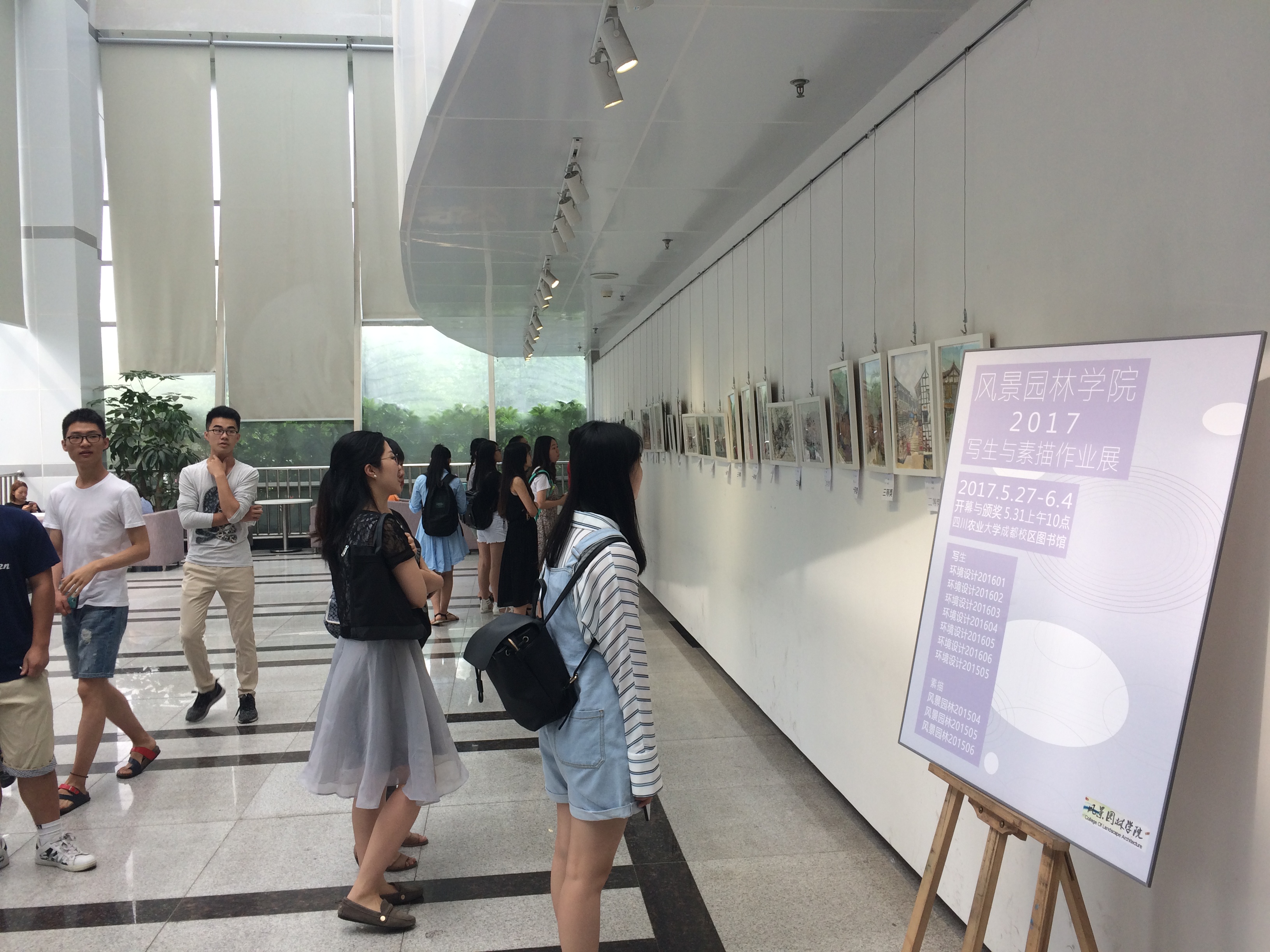 永利集团官网专业同学通过近半学期的精细素描刻画与环境设计专业同学为期一周的平乐古镇写生,同学们用自己手中的画笔定格了美丽的画面,用心凝聚的作品,绘成独特的美丽画面,汇聚在图书馆中给前来参观的同学和老师们带来了一场盛大的视觉体验。