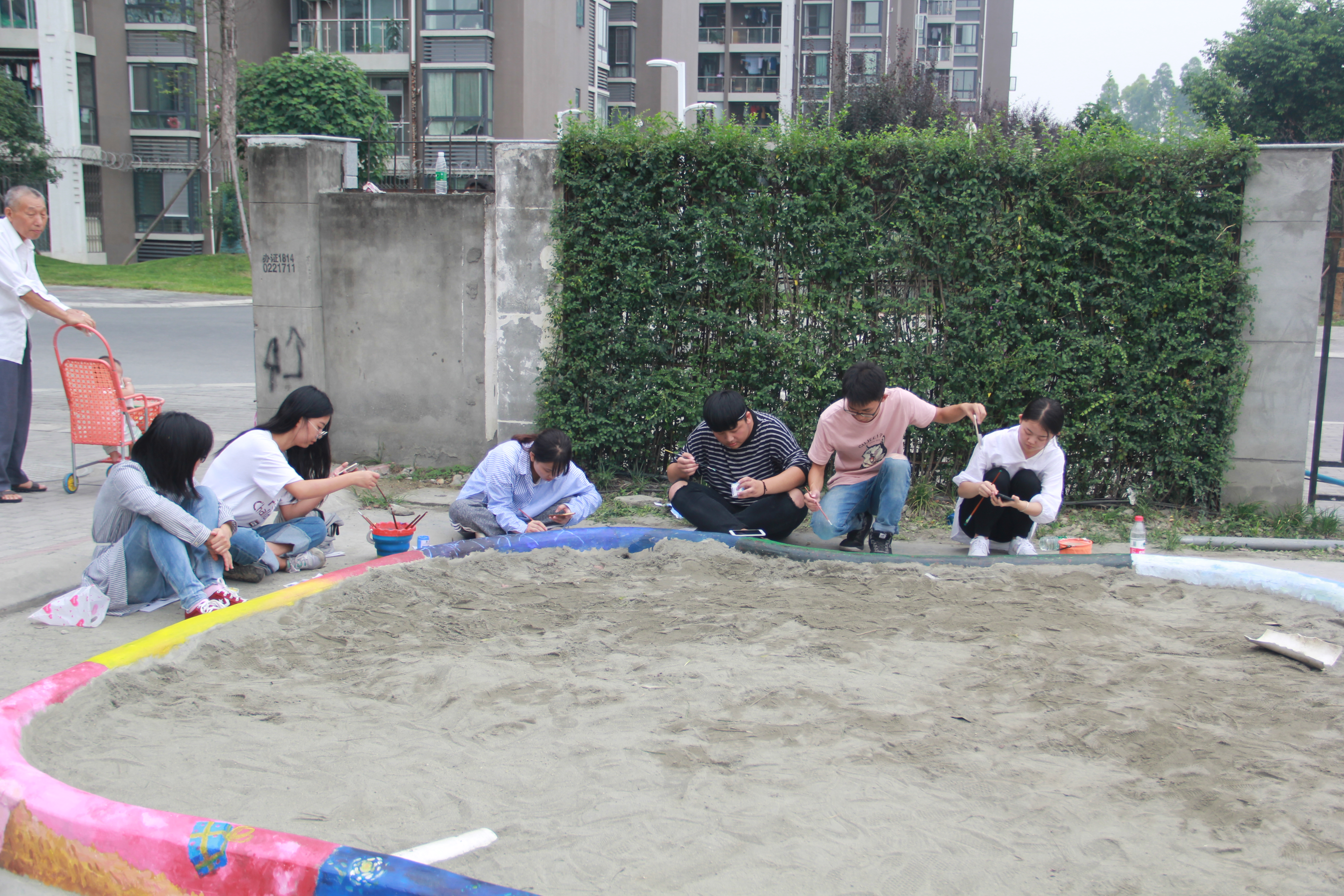 永利集团官网学子有一双慧眼,校园里哪里需要美,就会拿起画笔美化校园环境。校区操场角落为小朋友专门修建的沙池显得单调而冰冷,但经过304am永利集团官网团委宣传部同学的巧手,在沙地壁绘上精美的图画,向校区教职工及家人提供更佳的视觉体验,增添了不同的色彩与新意,带去了不一样的心情与感触。所绘画的图案富有童趣,为身在其中玩耍的小朋友们营造出童话般温馨烂漫的氛围。