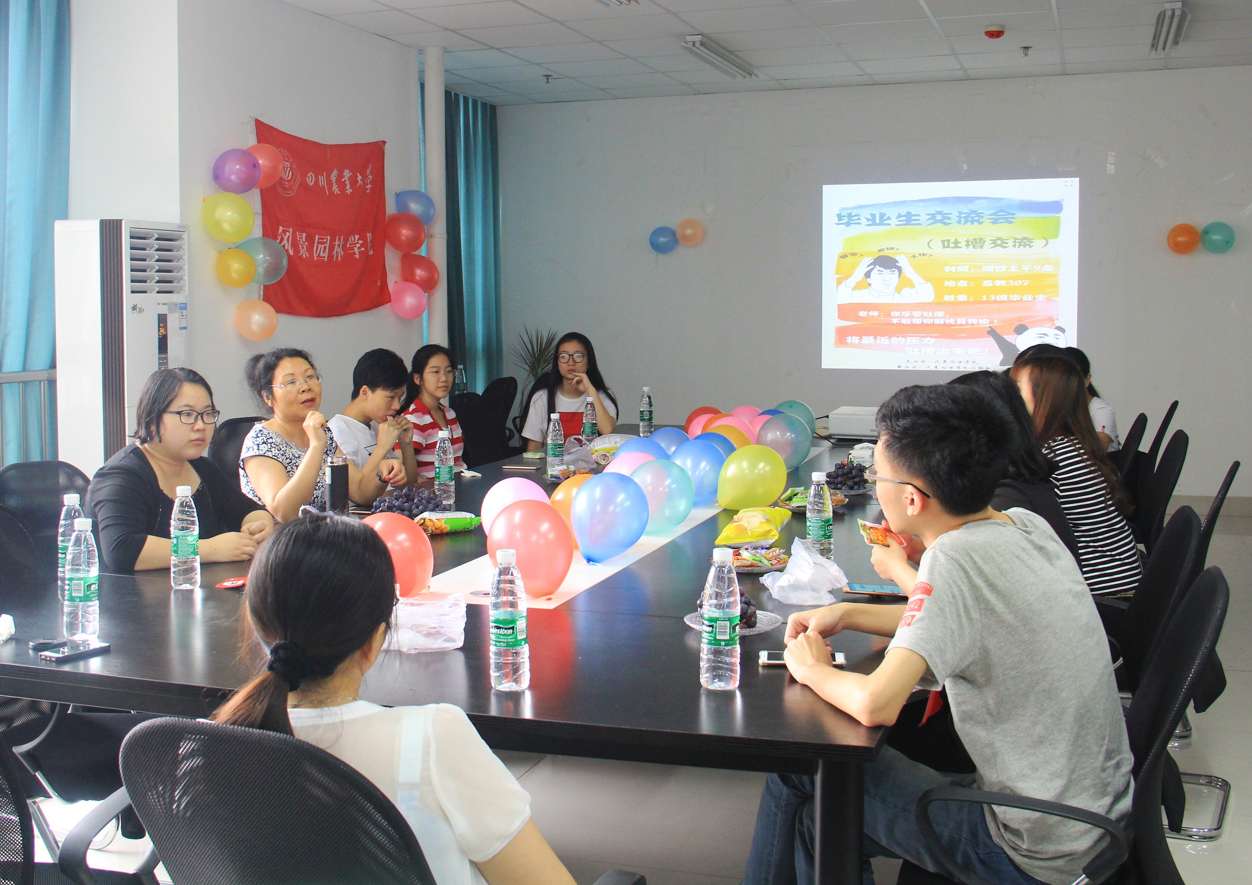 在线下,学院党委书记陈中桂老师一改往日端庄的“我院女神”范儿,像一个知心大姐姐一样坐下来倾听即将毕业的同学的吐槽。吐槽主题随时直播给线上同学。同学们共同吐槽了关于实习工资低的问题,大学爱情的不易心声,学校生活中的不如意,师生间的摩擦等等。从吐槽出发,我们把毕业生共同的很多问题摆出来,各抒己见。同学们发现,原来实习工资低是因为实习的回报不仅仅是现金回报,还有包括人际交往、灵活性与原则性、技能技巧等经验回报,是学校学习的延伸。当我们吐槽爱情,我们才开始懂得爱情的真谛—真诚和责任。当我们开始吐槽学校设施,才发现学校条件比实习地条件好多了,我们开始不舍校园,不舍食堂的饭菜,不舍宿管的阿姨大叔,不舍要求严格的老师……当我们吐槽在学校被某某老师狠狠批评过,才发现原来不关心你的人才不想对你多费口舌。最后,老师代表也开始了吐槽模式,在幽默的“我要吐槽中”我们总结出了一个更好的师生共处模式,多些互相理解与宽容,少些伤害。