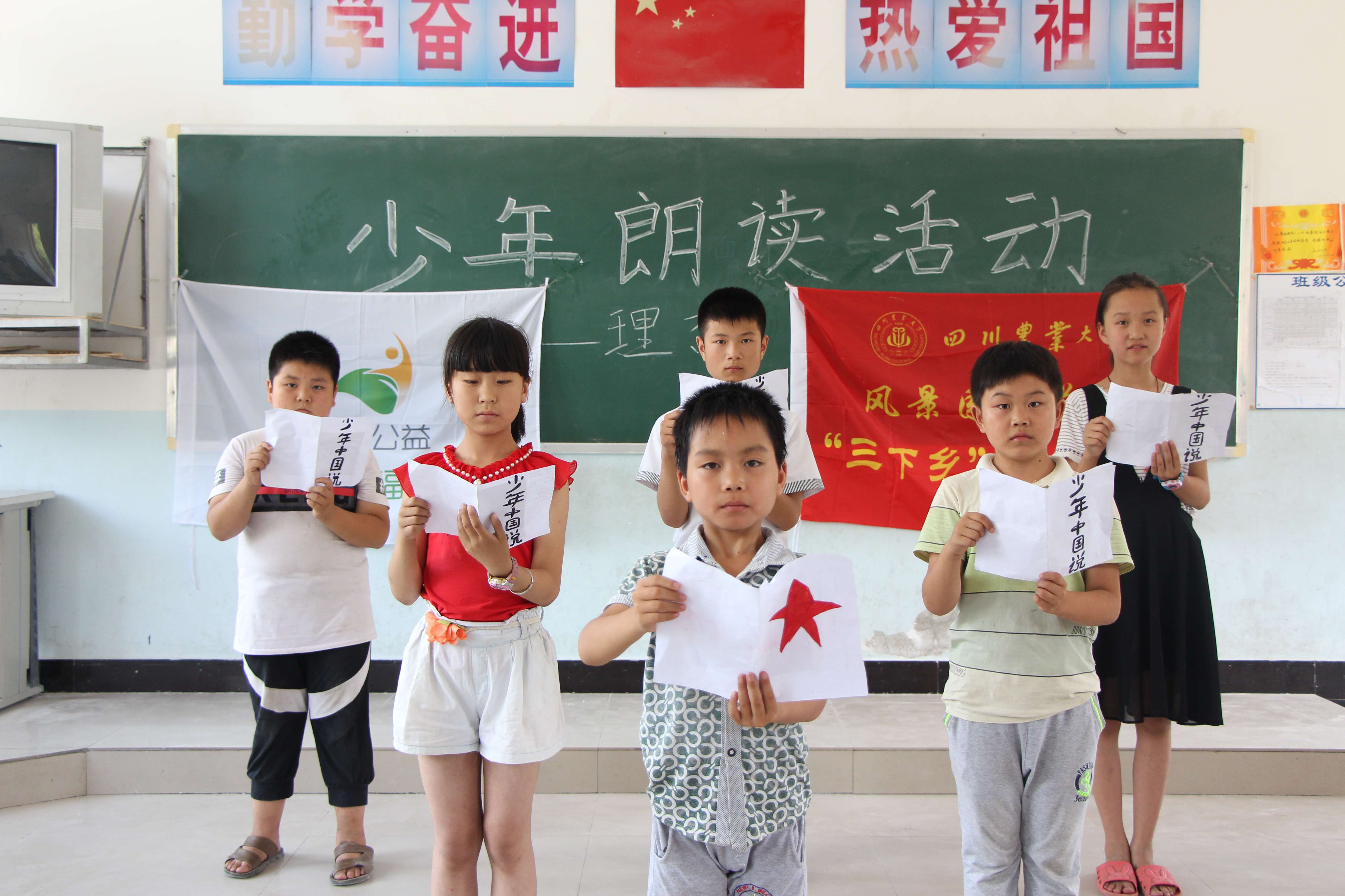 近日, 304am永利集团官网米团公益普阳使者团队的志愿者们在陕西省汉中市宁强县金山寺八一小学开展了主题为“理想”的少年朗读活动。乘长风之姿,立高远之志,志愿者团队经过几天的精心准备,以川农大精神“爱国敬业,艰苦奋斗,团结拼搏,求实创新”和“我自豪,我是川农人”拉开了朗读的帷幕,旨在以朗诵的方式让孩子们树立远大理想,激发孩子们的爱国热情,同时让孩子们感受中国传统文化的博大精深。