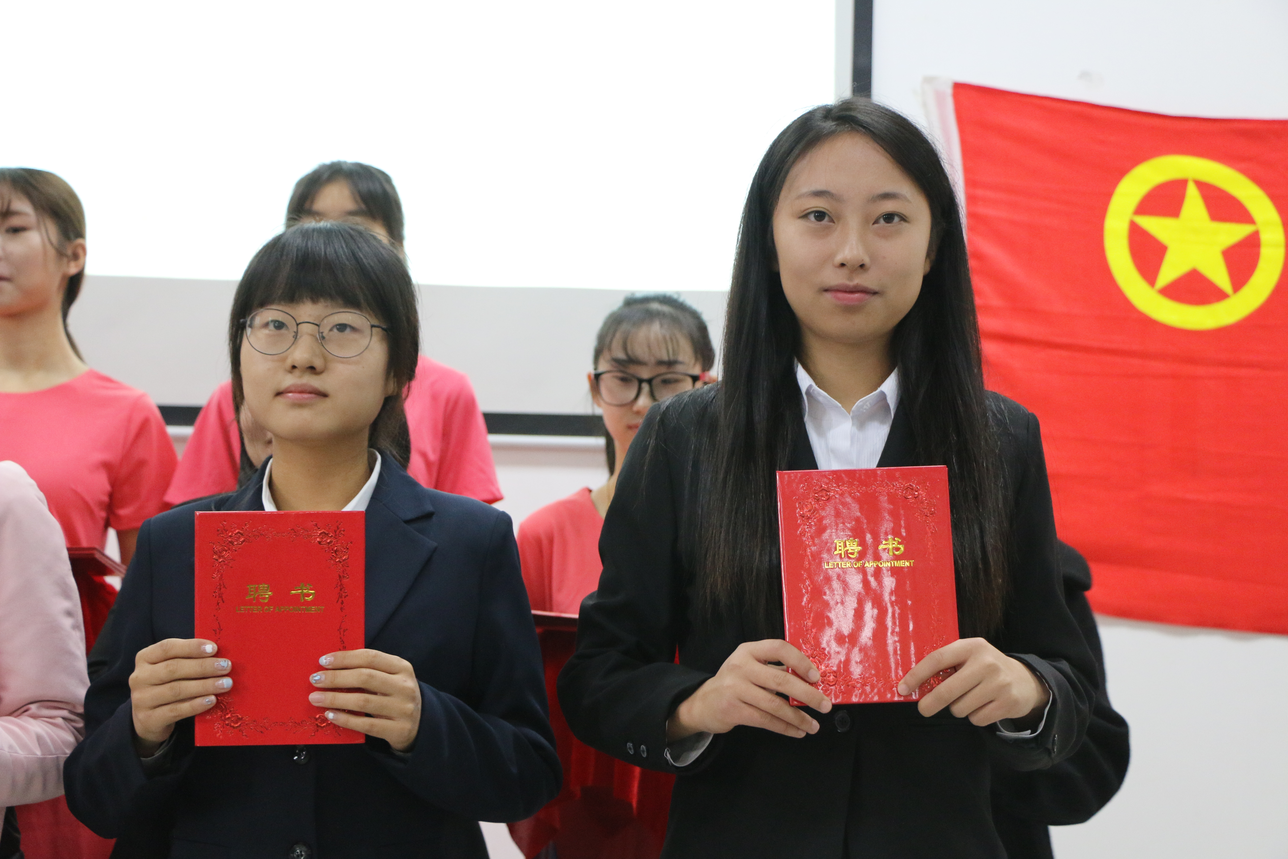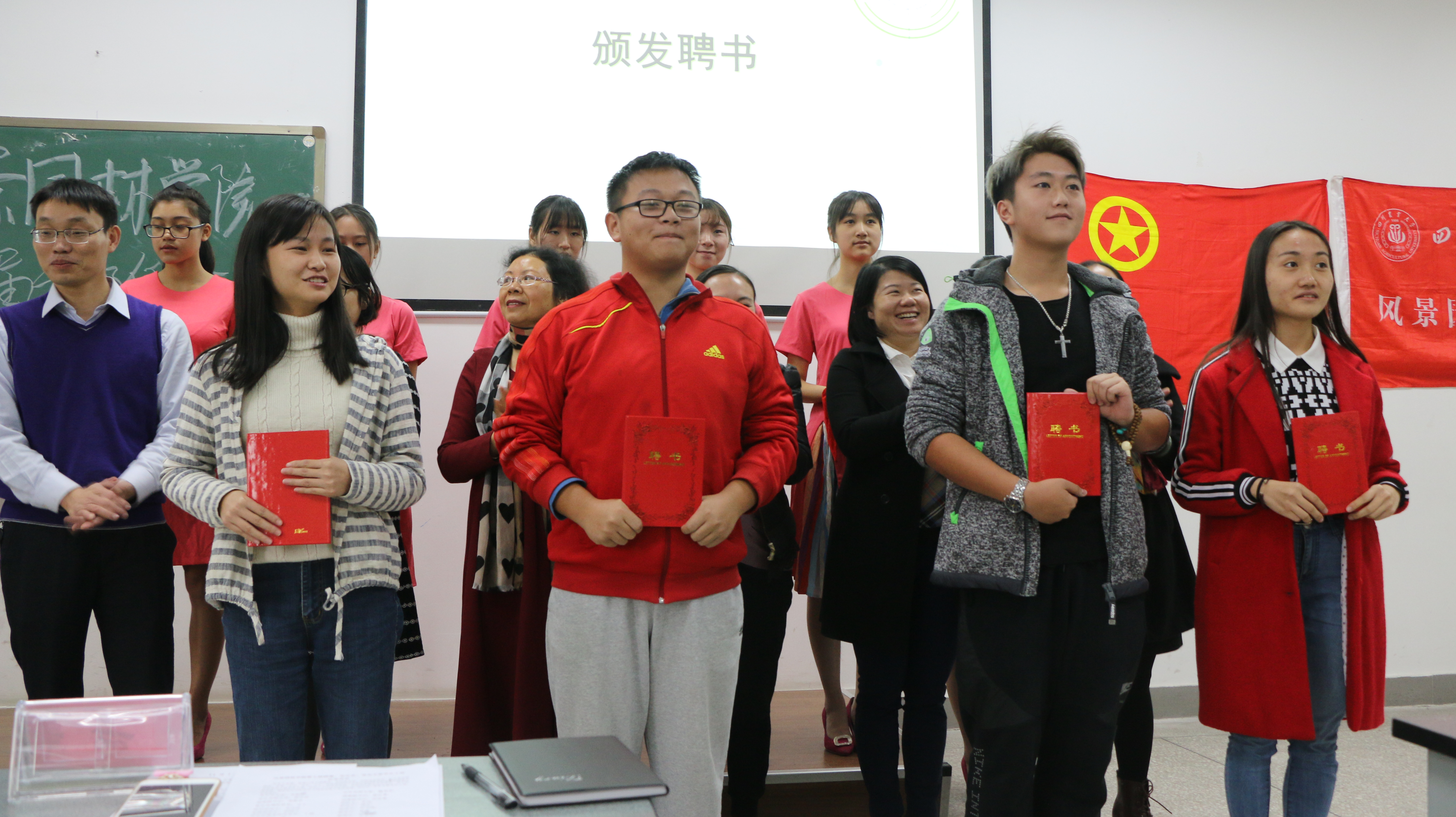 陈中桂用“高兴、期待、境界”代表学院表达了对学生干部们满满的祝福与期望。党委办公室主任、院团委书记王丽萍宣布了第七届团学青主要学生干部名单,六位老师共同为主要学生干部颁发聘书。