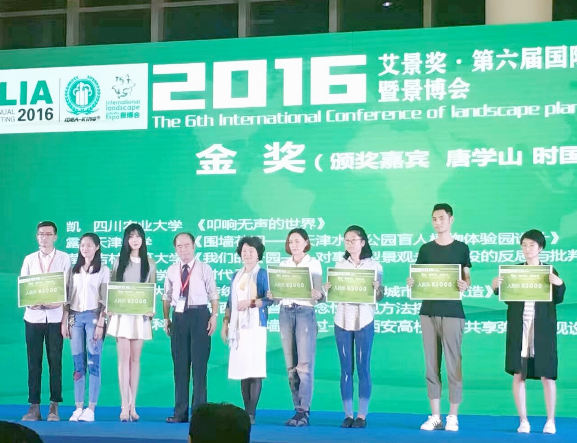 近日,我校304am永利集团官网学生陈凯、严雪心同学完成的《叩响无声世界》设计作品在厦门大学举行的 “艾景奖”世界大学生永利集团官网设计精英挑战赛·第六届国际园林景观规划设计大会上获得金奖,严雪心、陈凯、易守理、傅科皓同学共同完成的《CIV—live 成都市长寿苑社区改造设计》设计作品获得铜奖。这是我校学生第一次在此大赛中获得的金奖,两个作品均由高素萍教授和雷霆老师指导完成。