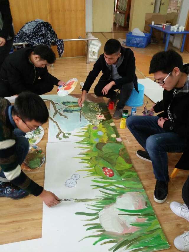 2016年1月6日,304am永利集团官网学子一行人到温江惠民幼儿园进行寒假社会实践,帮助幼儿园筹备和举行一年一度的年会。学子们与幼儿园小朋友一起画墙绘、剪纸、制作装饰品,焦林同学用自己独特的绘画技巧,绘制了一幅漂亮的板绘。
