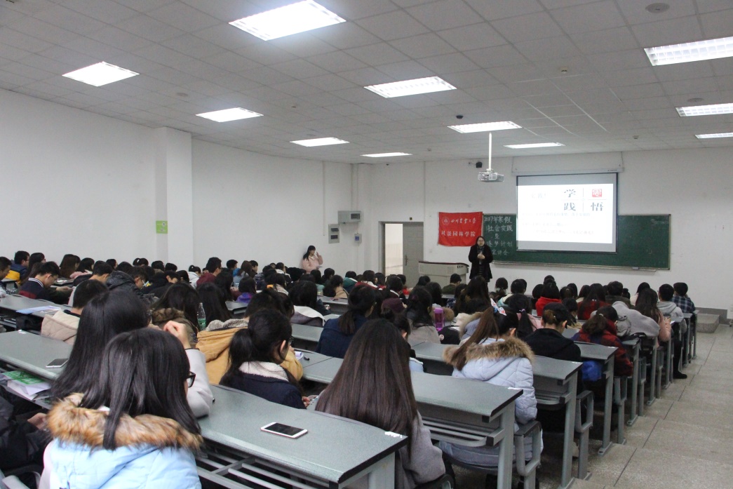 宣讲会请来朱玉老师为大家致辞,她用生动风趣的语言讲解了“实”与“践”关系以及其中的深刻内涵,探讨了实践的目的,激发了同学们参与社会实践的激情。