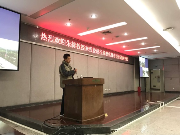 2016年12月10日下午14点,“景观化都市设计”讲座交流会在我校图书馆二楼报告厅成功举行。主讲嘉宾重庆大学朱捷教授,副院长李西教授致欢迎辞并主持了交流会,学院党政领导、部分老师和学生聆听了报告。