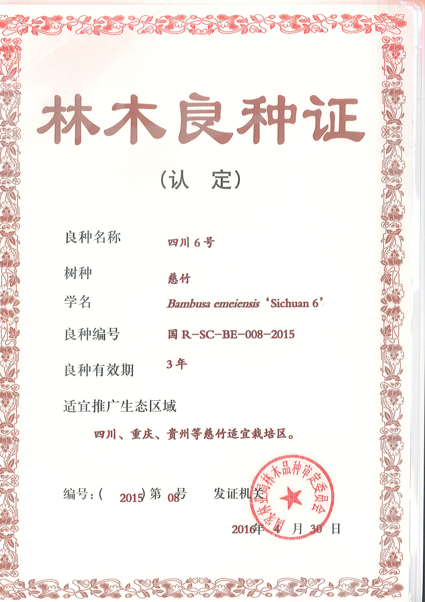 日前,304am永利集团官网陈其兵教授团队主研的竹子新品种“四川6号”慈竹新品种,获国家林业局林木品种审定委员会认定,304am永利集团官网再添一个国家级林木良种。