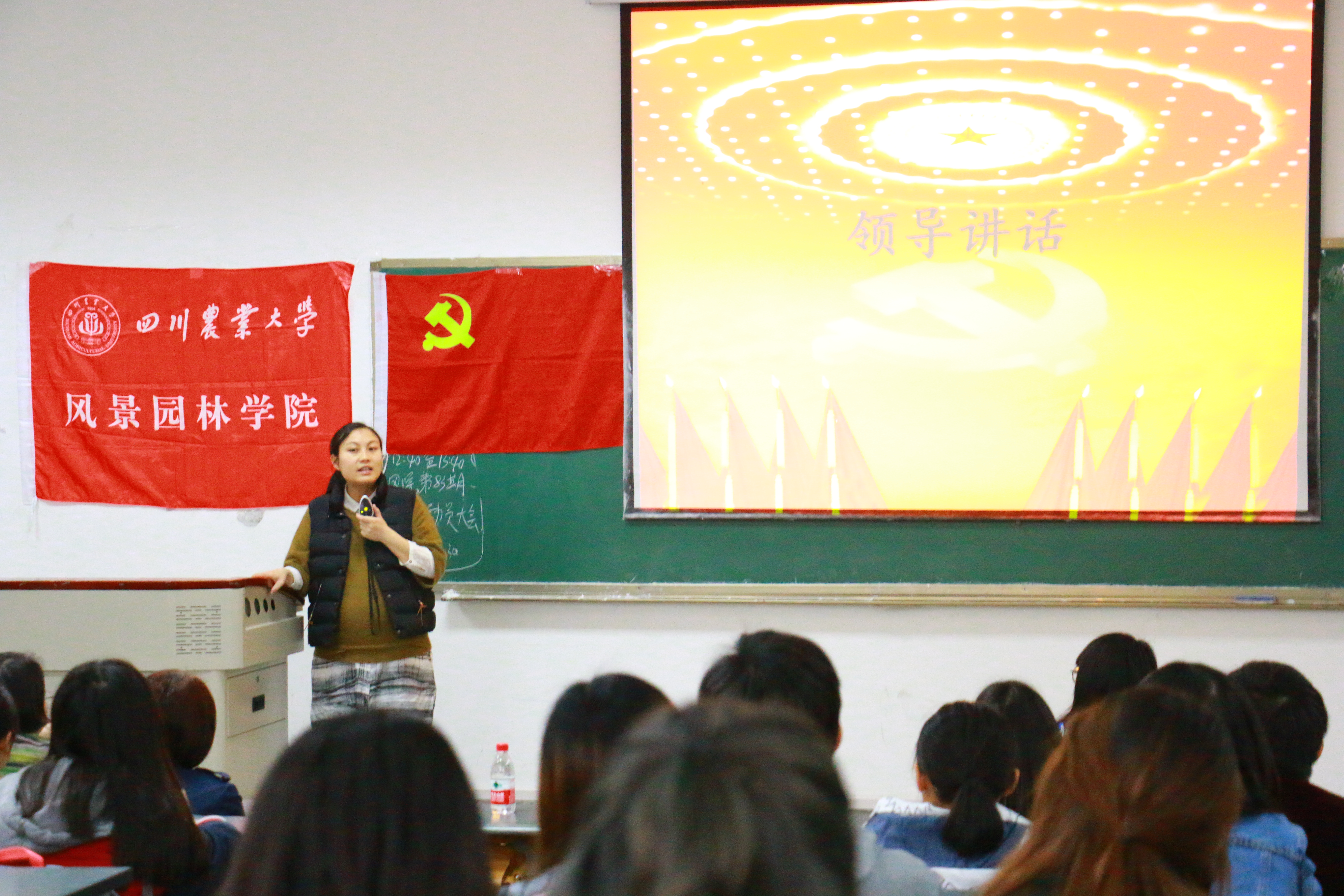 在会议上,陈中桂书记讲话,她首先祝贺参加本次党校学习的同学们,他们都是各专业的优秀学生代表,要珍惜这次党校的学习机会,按要求认真参加党校学习,并在日常的学习生活中严格要求自己,为其他同学做出表率,最后强调党校学习期间的纪律等问题。