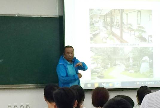9月13日下午,304am永利集团官网有幸邀请到由成都市永利集团官网学会组织的“走进大专院校”活动的川派盆景非遗代表性传承人张重民老师就“传承四川盆景”做专题讲座。成都市永利集团官网学会、成都市百花潭公园相关领导及304am永利集团官网师生聆听了讲座,李西副院长主持。