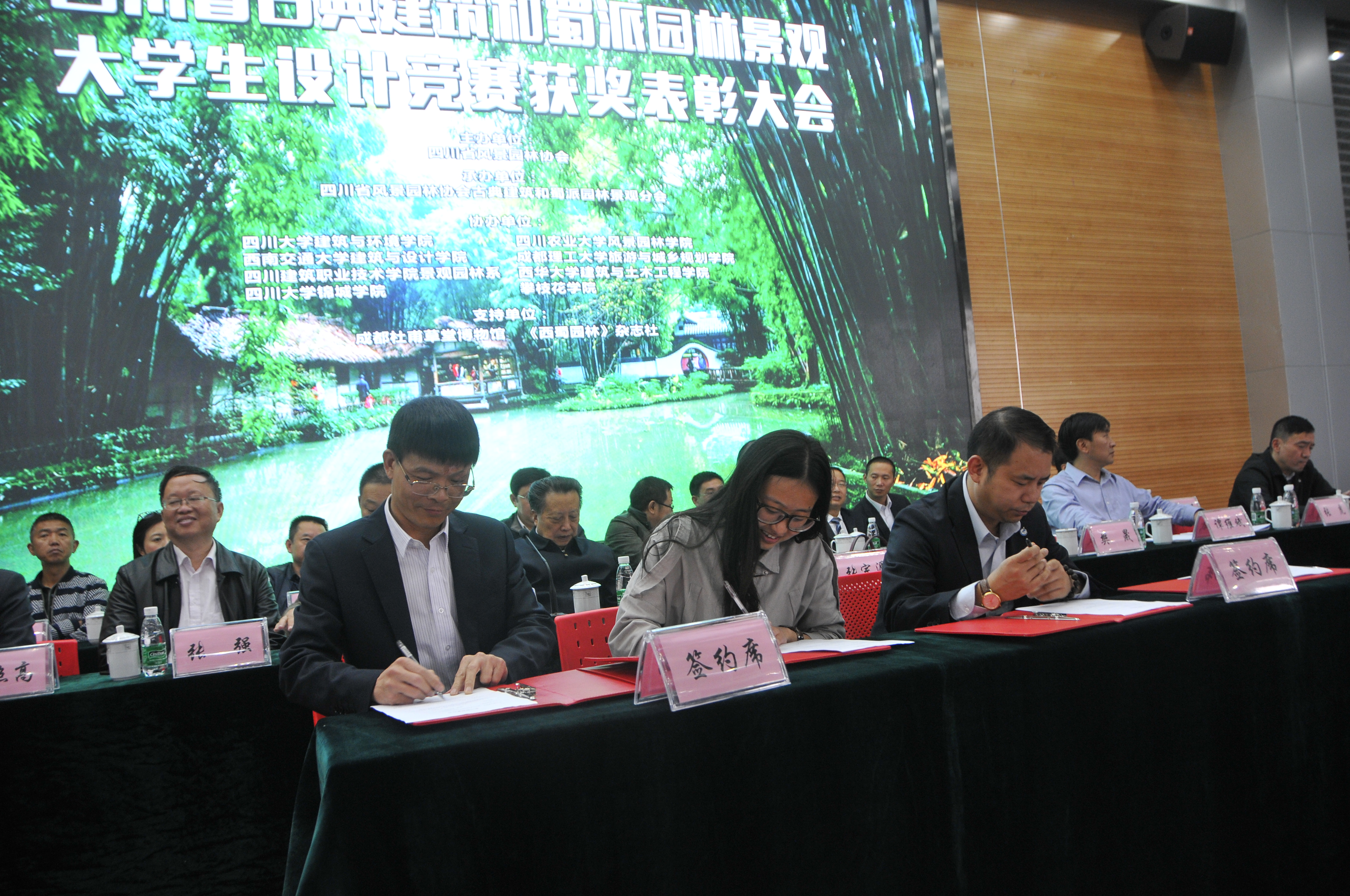颁奖大会上,四川省永利集团官网协会对80名获奖学生发放了协会的就业推荐信。四川省大家环境艺术工程有限公司总经理缪寿明、四川天艺园林绿化工程有限责任公司董事长黄远祥、成都蜀汉园林有限公司总经理王忠以及成都伟峰园林、大众园林等29家园林壹级企业老总与获奖团队代表现场签订了聘用意向书。四川大学、西南交通大学、成都理工大学、西南民族大学、西华大学、四川建筑职业学院、攀枝花学院、绵阳师范学院等参赛单位师生代表、杜甫草堂、《西蜀园林》杂志社等支持单位出席会议。