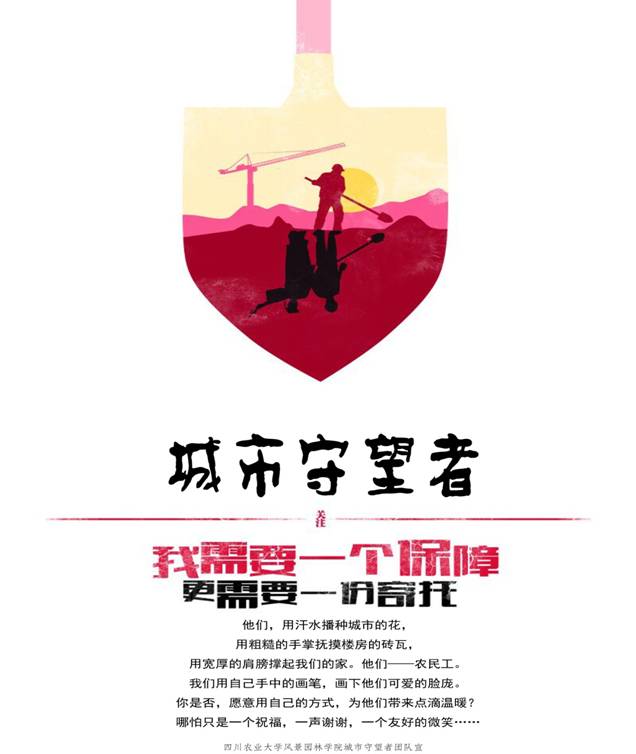 “我们会在以后的日子里将温暖继续传递,也在此呼吁大家加入到我们的队伍,希望有更多的人用自己的方式来感谢、关爱我们可爱的农民工兄弟!”团队负责人笑着说,眼底,尽是期待。团队特别感谢:四川农业大学基建部 对我团队活动的支持,指导教师陈中桂副教授对我团队的鼓励与指导。