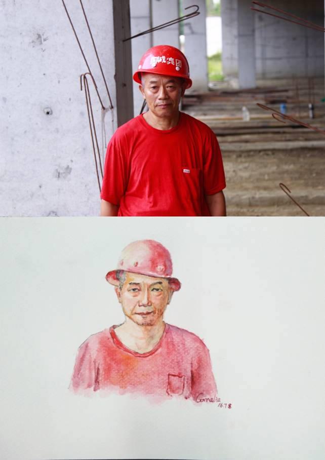 2016年6月21日,在工地负责人的带领下,团队来到了四川农业大学成都校区的一处工地。做好安全措施后,团队成员们走进了工地内,向工人们说明了来意。征得工人们同意后,团队成员与他们进行了简单的交谈和采访并为他们拍摄了照片作为后期绘画的素材。