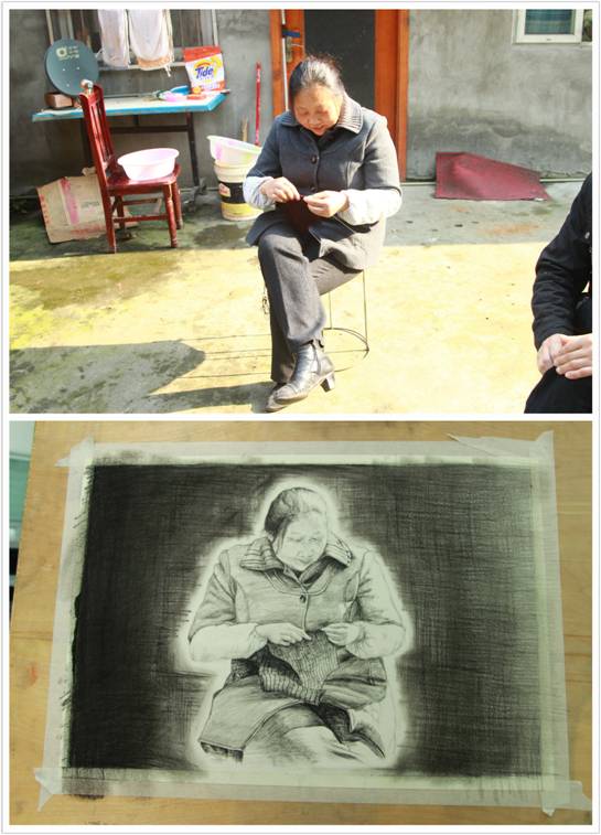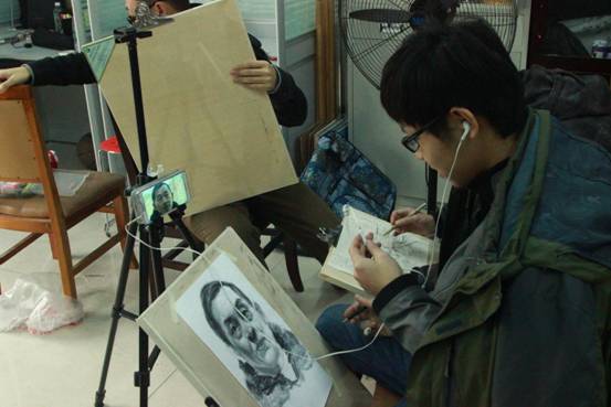 农民工是我们城市的建设者,更是城市守望者,学生团队来到成都校区近期正在施工工地上,找到工人食宿区,征得了几位农民工人同意并为他们拍摄了照片作为后期绘画的素材。