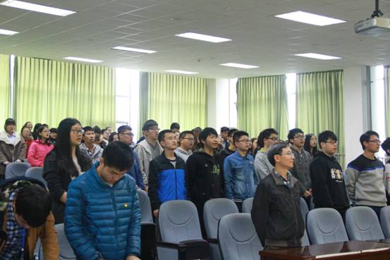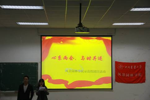 在激昂奋进的团歌中,此次活动正式拉开序幕。主持人与同学们积极互动,在欢笑声中一步一步普及两会知识。通过唱歌,诗朗诵等形式充分体现了我院学生作为团员积极向上的精神面貌。幽默诙谐的冯老师,提出“珍惜“”拓展“,希望当代的大学生要”珍惜“青春,大胆尝试,要“拓展”自身,全面发展。