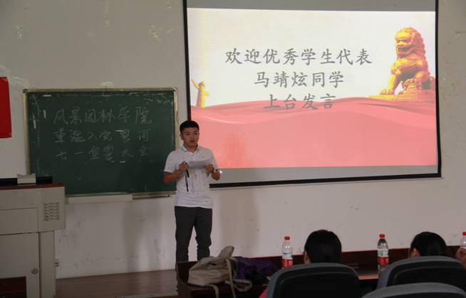 景建14级1班的马靖炫同学作为学生代表表达了对中国共产党成立95周年和母校110周年校庆的祝福;随后,他总结了这一年以来的党校中的学习历程,以及在今后的日子中应该如何做一个更优秀的共产党员。