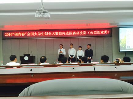 2016年4月14日“2016年‘创青春’全国大学生创业大赛校内选拔赛总决赛”落下帷幕。学院从26份作品里选出9份作品进行初赛,推荐的7份作品参加校内选拔赛。经过激烈的角逐,刘仕林团队的“成都甲乙丙景观设计有限责任公司”获实践挑战赛特等奖,王志豪团队的“成都景观帮信息技术有限公司”获实践挑战赛二等奖。邹瓒团队的“心领益绘”公益项目获公益创业赛一等奖。以上三个项目拟推参加省赛。宋枚璘团队的“羌杉智能空气净化养生盆景”获创业计划赛二等奖,任家怿团队的“四川清馨香草有限责任公司创业策划书”获创业计划赛二等奖,易守理团队的“四川百花生物科技有限公司”获创业计划赛三等奖,李可盈团队的“绘吗”APP创业计划赛获优秀奖。
