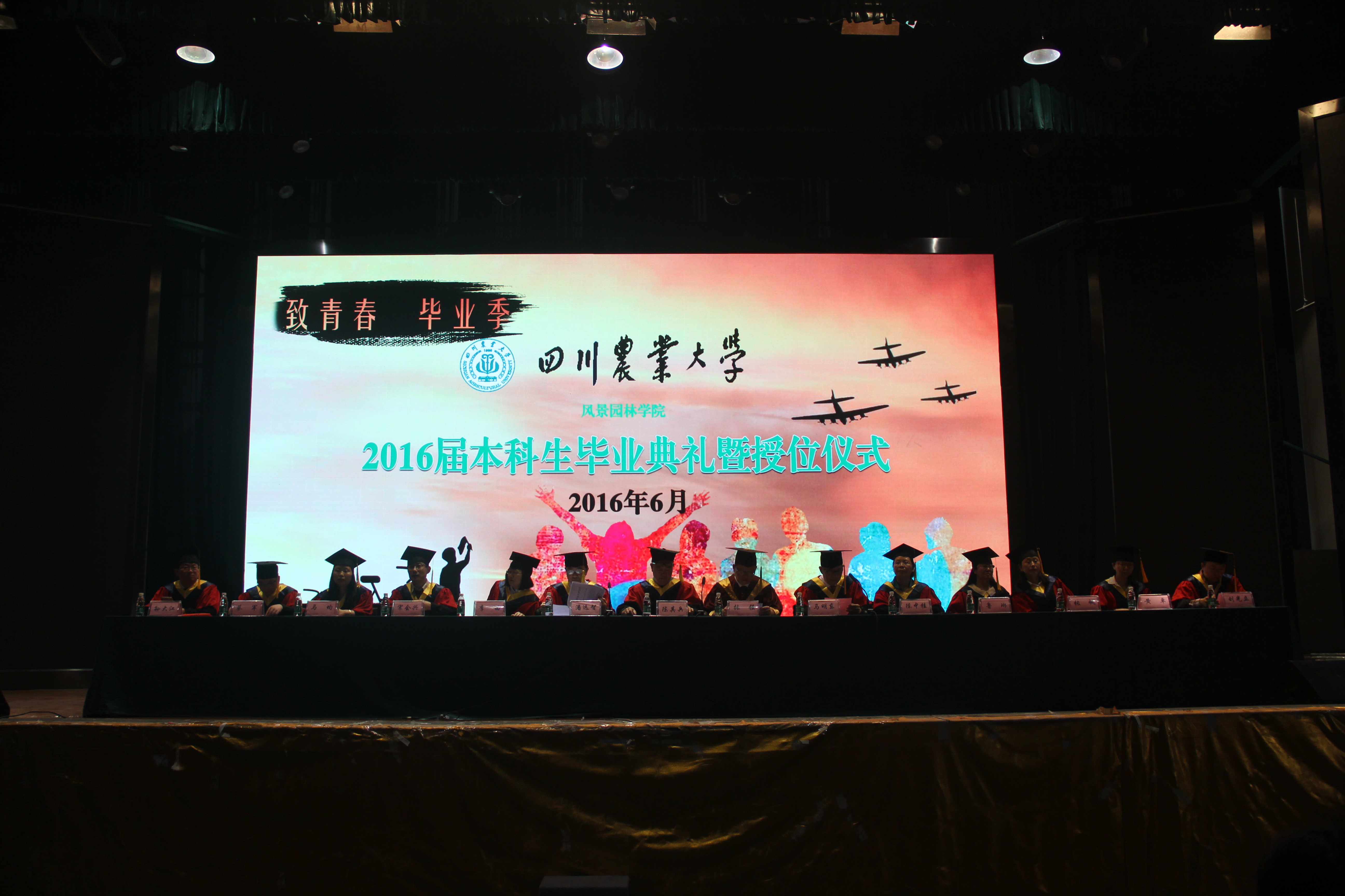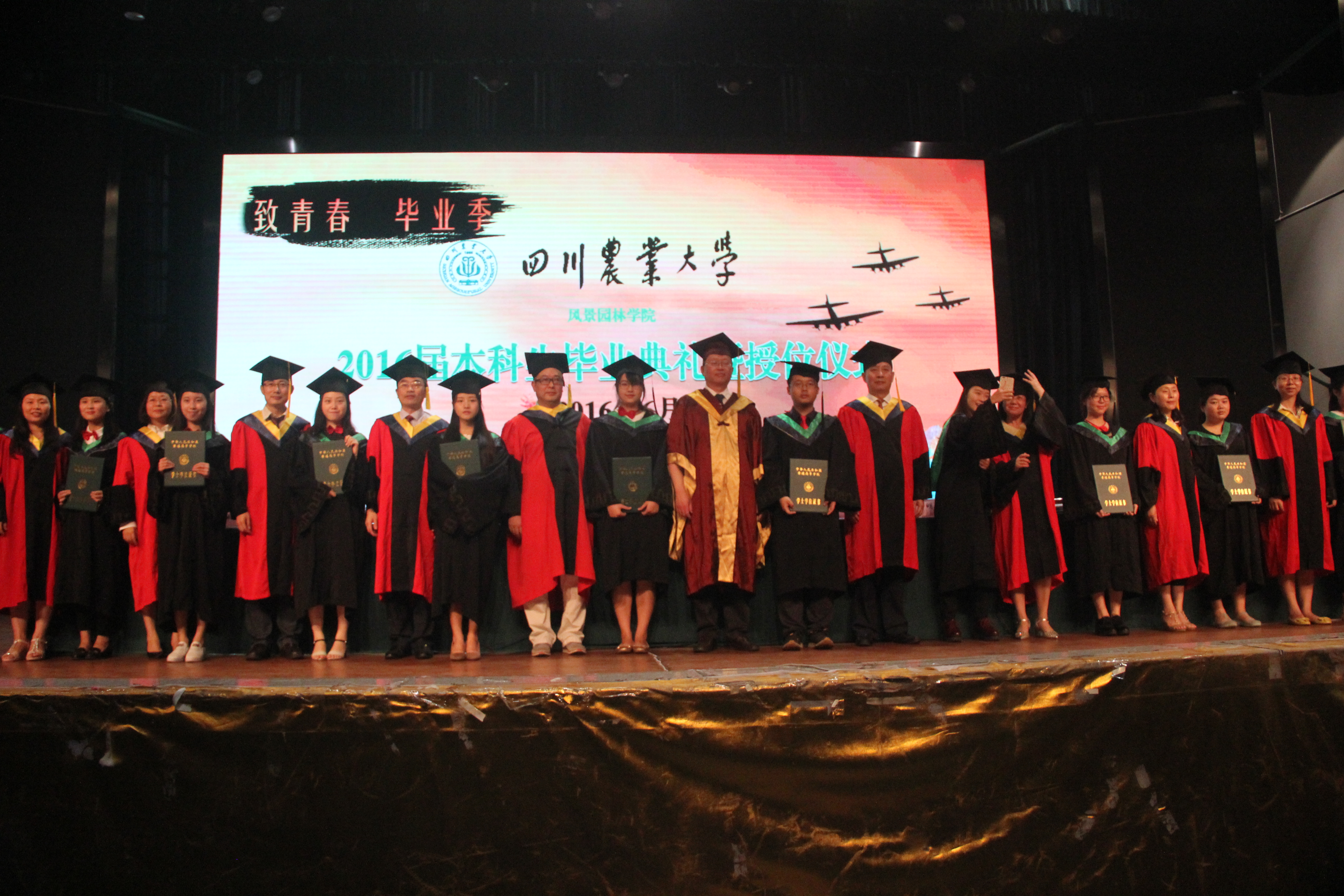又是一年毕业季。6月14日上午9点,304am永利集团官网2016届本科学生毕业典礼暨授位仪式在麦立方如期拉开了帷幕。授位席上,学校副校长张强教授,校学位评定委员会委员、学院学位评定分委员会主席、博士生导师、学院院长陈其兵教授,学院学位评定分委员会副主席、博士生导师、学院党委书记兼副院长马明东教授,学院学位评定分委员会委员、博士生导师、学院副院长潘远智教授,学院学位评定分委员会委员、党委副书记陈中桂副教授与其他九位学院学位评定分委员会委员鲁琳副教授、张帆教授、黄卓副教授、刘光立副教授、李西教授、宋会兴教授、马均教授、蔡军副教授、孙大江副教授面带微笑,亲切地望着这一群即将离开校园的孩子。授位席下,学院辅导员、毕业班班主任以及全体2016届毕业生和毕业生亲友共聚一堂,紧张而又兴奋。