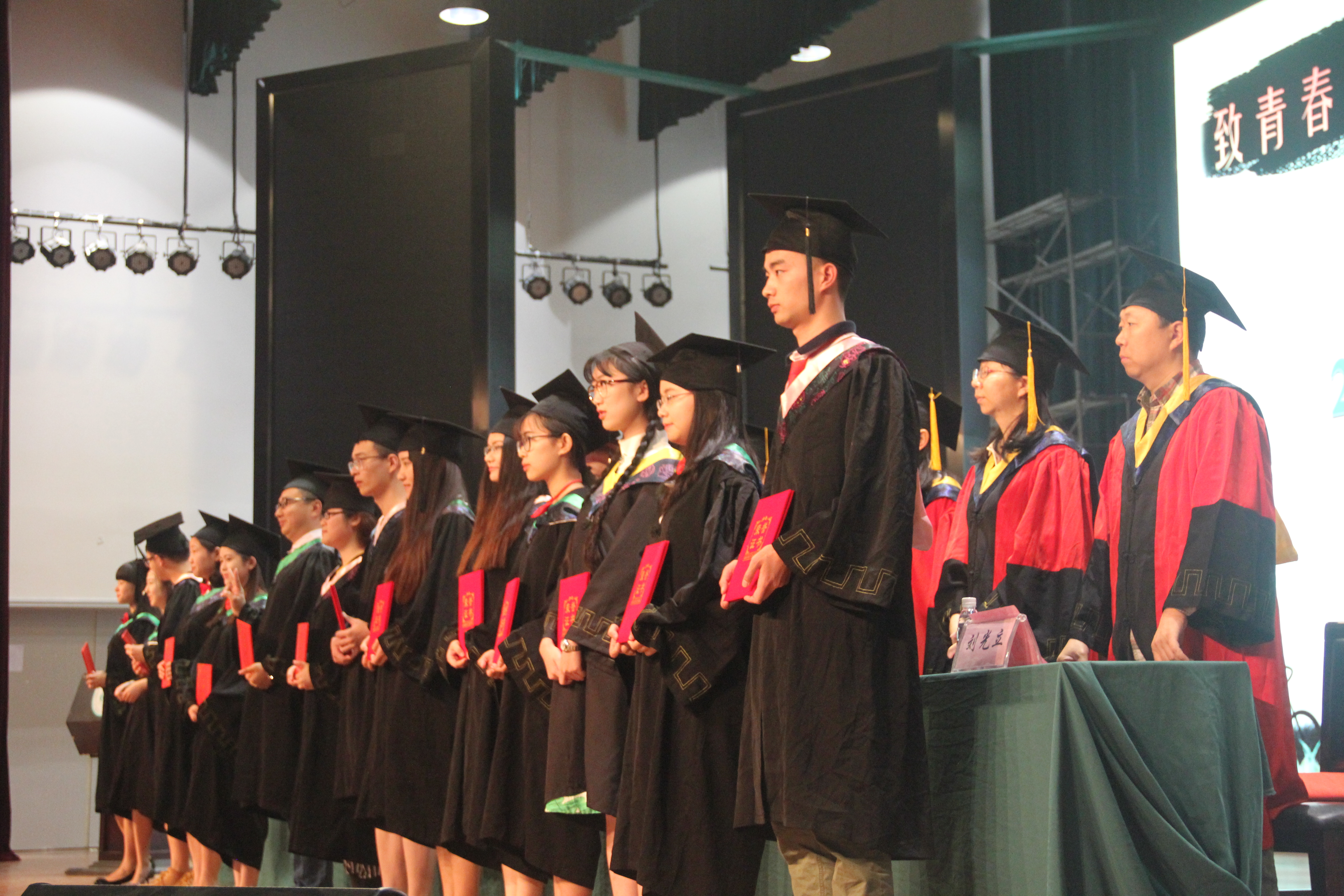 紧接着,陈中桂副书记宣读各专业授位学生名单。身穿学士服,头戴学士帽的700多名同学依次走上授位席接受授位,并与授位老师深情相拥 。