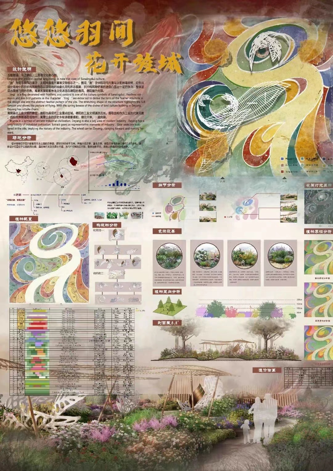 我校永利集团官网本科学子刘欣雨,杨鹏程,封明霞,张心贝,商瑾倩,在蔡仕珍老师的指导下,参加“2022德阳·市花月季节大学生花境大赛”。自2022年3月1日收到方案征集通知以来,团队在满课的学习状况下,充分利于课余时间,见缝插针,积极准备,挑灯夜战,完成并于3月29日向主办方提交了“悠悠羽间 花开旌城”设计方案。方案经过永利集团官网行业的知名高校和设计机构的专家评审,从国内高校92个有效设计方案,400余名学子参加的竞赛中成功入围10佳方案,其中入围10佳的团队只有2个本科生团队,其余8个都是研究生团队。并进入落地建造阶段。在施工过程中,团队克服受工程经费限制、场地现状制约、花镜材料调整以及施工协调等诸多困难,充分发挥主观能动性,通过自制材料、现场调整等途径,凸显表达设计主题与意境。方案在4月29日施工状况现场评审得到好评,与国内高校研究生团队同台竞技,斩获银奖。